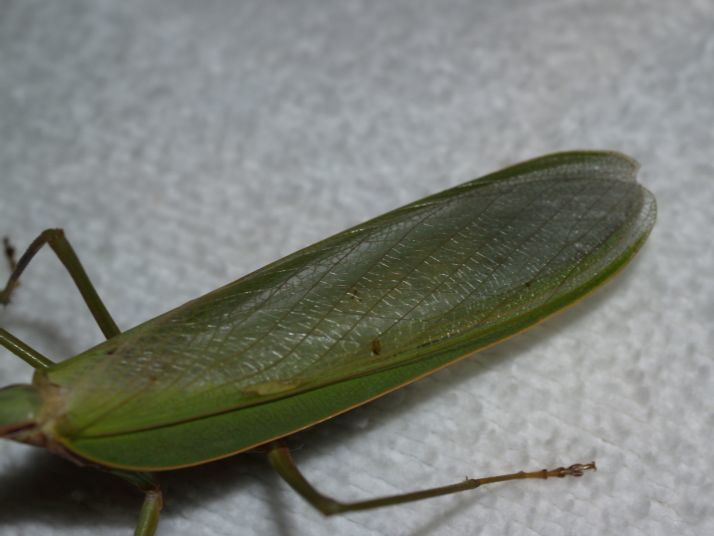 全体的な特徴は、ハラビロカマキリのオスだけど、前脚に黄色の点がなかったり、大きさが90mm近くあったり・・・ このカマキリは??